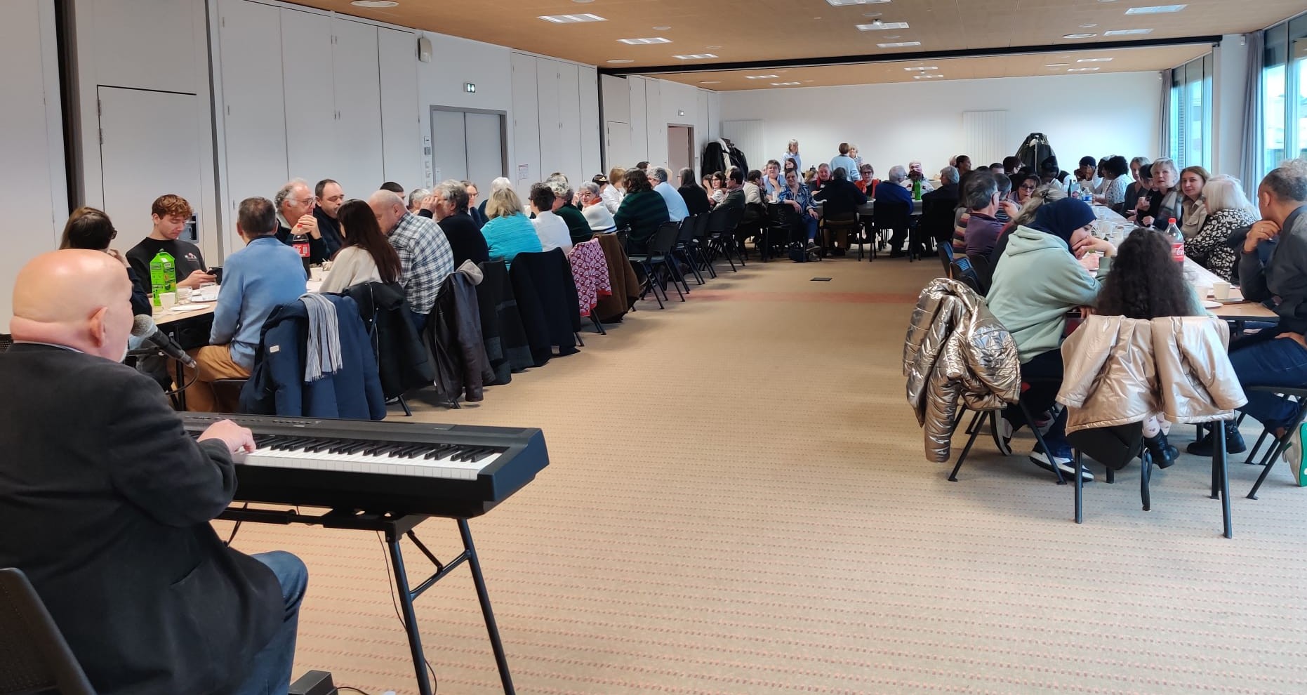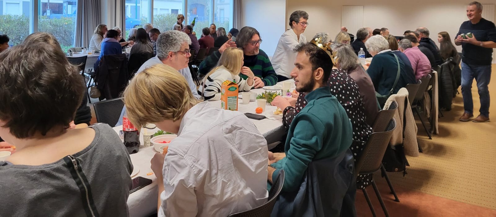 Dimanche 18 janvier 2026, les adhérents, tuteurs, apprenants, ainsi que leur famille ont été conviés à participer à un après-midi festif, à la salle Ti Kastellys de Saint-Pol-de-Léon. Près de 110 personnes, de nationalités différentes, se sont retrouvées pour fêter la nouvelle année, se présenter leurs vœux et déguster une part de galette. Yves Chelala a animé bénévolement cette rencontre par des musiques intemporelles et des chansons françaises. Des apprenants ont aussi entonné des chants de leur pays.